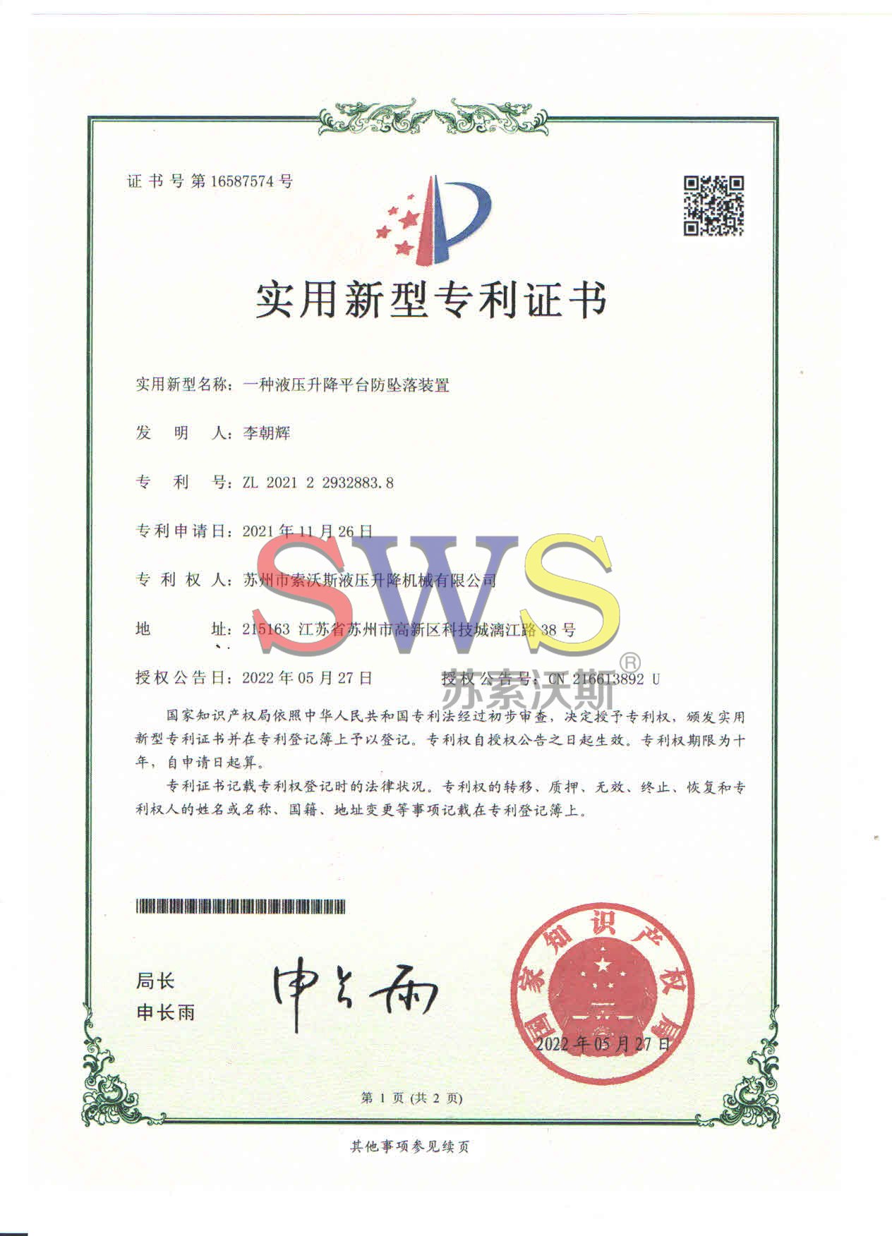 蘇州市索沃斯液壓升降機(jī)械有限公司
