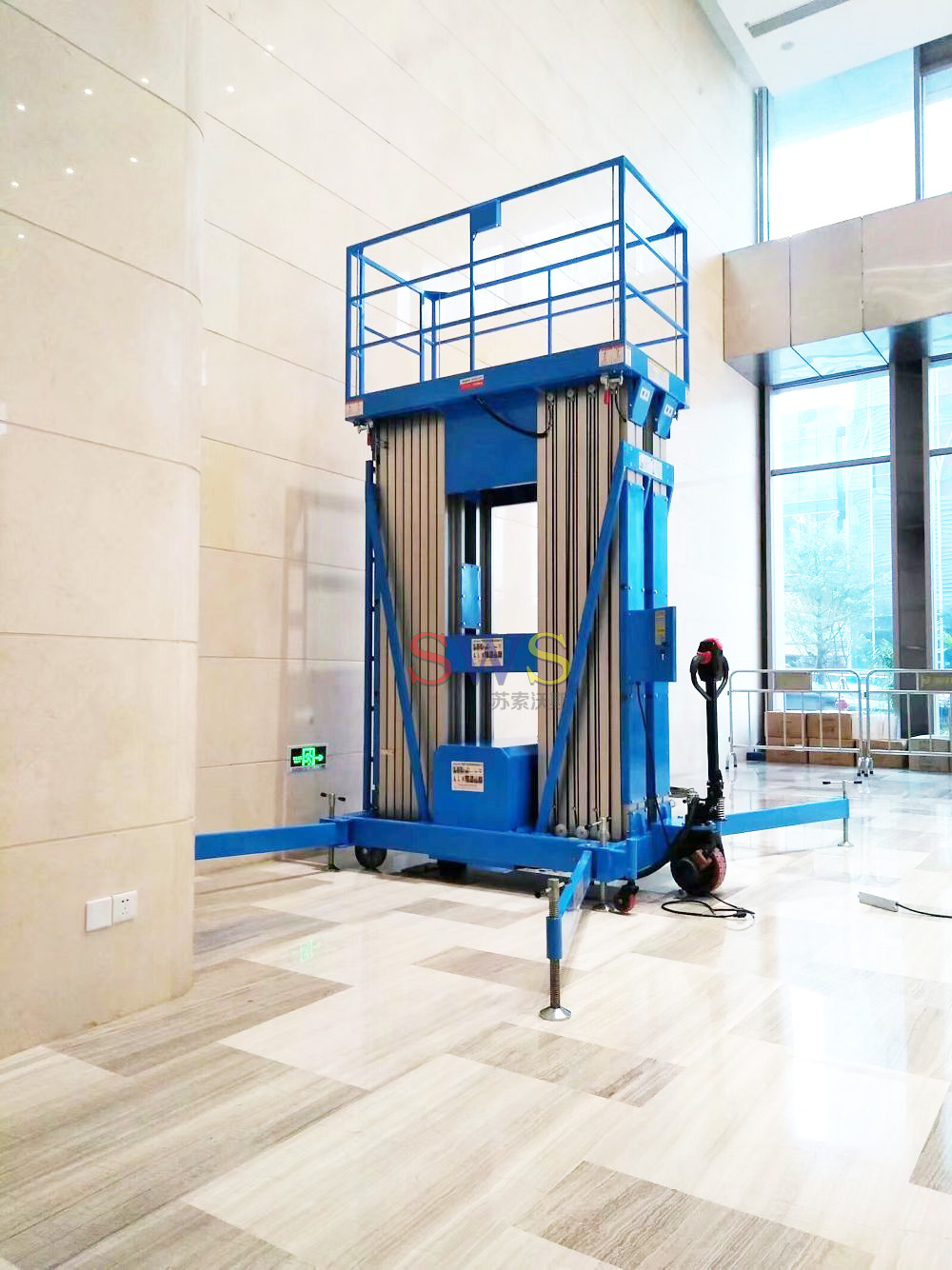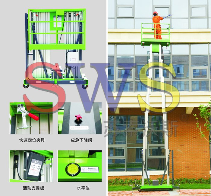 升降桅柱全部用用高強(qiáng)度鋁合金型材,整機(jī)重量輕,移動(dòng)十分方便。